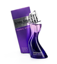 La nueva fragancia mágica, sexy y provocativa de Bruno Banani, Magic for woman, seduce y embriaga con su composición y sus curvas. Con matices florales y frutales en una botella de color púrpura. Banani Magic Women incluye notas de melón Tyger, maracuyá, violetas y bayas rojas en las notas de salida, que son un verdadero placer para los golosos. Se burlan de todos sus sentidos con Champaign, chispas de rosa, lirio del valle y las fresas salvajes en el corazón de la fragancia. Notas de fondo con acordes de almizcle y sándalo.La botella se crea en vidrio, con las curvas sensuales y sexy en púrpura y violeta.