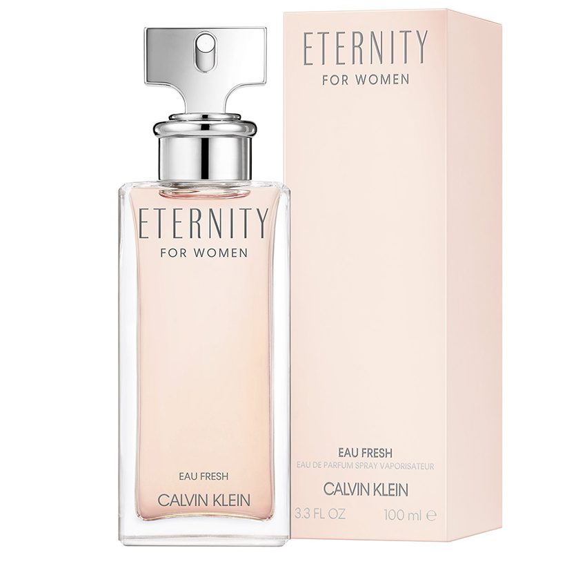 Una fragancia floral enérgica, ETERNITY Eau Fresh evoca la avalancha la energía de la intimidad y la conexión. La fragancia es un juego de frutas, flores y elementos cálidos de almizcle. El jazmín y la peonía están en el corazón con notas de salida altas de pera y cassis, ancladas por una base de pachulí y ámbar.