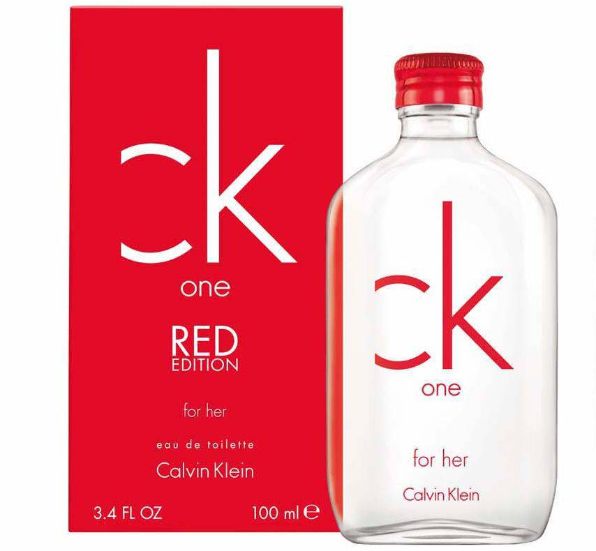 CK One Red Edition for Her de Calvin Klein es una fragancia de la familia olfativa Floral Frutal para Mujeres. Esta fragrancia es nueva. CK One Red Edition for Her se lanzó en 2014. Las Notas de Salida son sandía y violeta; la Nota de Corazón es notas florales; las Notas de Fondo son pachulí, ámbar blanco y almizcle.