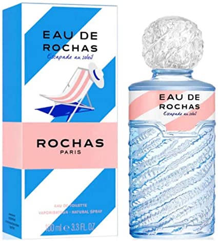 Eau de Rochas Escapade au Soleil de Rochas pertenece a la familia olfativa Cítrica -Floral fue lanzada en 2020. Eau de Rochas Escapade au Soleil no deja duda alguna sobre su promesa de vacaciones: sol, frescor y buena vida. Impone una salida explosiva con el frescor de un acorde de limón y bergamota, acompañado con una pizca de grosella negra. Le sigue el brillo soleado de un ramo floral con acentos de jazmín y flor de azahar. Posee un fondo amaderado de cedro y ámbar gris envuelto en un halo de almizcles.