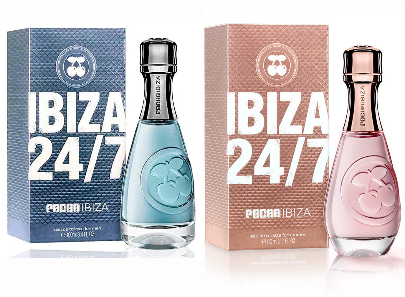 Pack con dos fragancias de 100 ml Pacha Ibiza 24/7 Men de Pacha Ibiza es una fragancia de la familia olfativa Cítrica Aromática para Hombres. Esta fragancia es nueva. Pacha Ibiza 24/7 Men se lanzó en 2018. Las Notas de Salida son limón italiano (lima italiana), toronja (pomelo), cardamomo y tequila; las Notas de Corazón son albahaca, lavanda, notas marinas y geranio; las Notas de Fondo son cuero, cedro, ámbar y musgo. Pacha Ibiza 24/7 Women de Pacha Ibiza es una fragancia de la familia olfativa Oriental Floral para Mujeres. Esta fragancia es nueva. Pacha Ibiza 24/7 Women se lanzó en 2018. Las Notas de Salida son chabacano, manzana verde, bergamota y jengibre; las Notas de Corazón son peonía, iris y fresia; las Notas de Fondo son sándalo, vainilla, leche y almizcle.