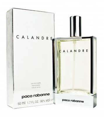 Calandre de Paco Rabanne es una elegante perfume femenino. Creado en honor a la mujer de espiritu libre y activa. Fue presentado por primera vez en 1966. Calandre es una fragancia suave, floral. Es una combinación de flores suaves con hierbas y bosques. Calandre es un perfume equilibrado, chispeante para la mujer activa de hoy. Notas altas: aldehídos, notas verdes, bergamota Notas de corazón: lirio, jazmín, lirio, rosa Notas bajas: sándalo, ámbar, almizcle, musgo de roble Calandre es un perfume fresco equilibrado. Ideal para regalar a una mujer moderna. Diseñador de este perfume es Michael Hy, y el frasco fue diseñado por Pierre Dinand. La nariz detrás de esta fragancia es Michel Hy .